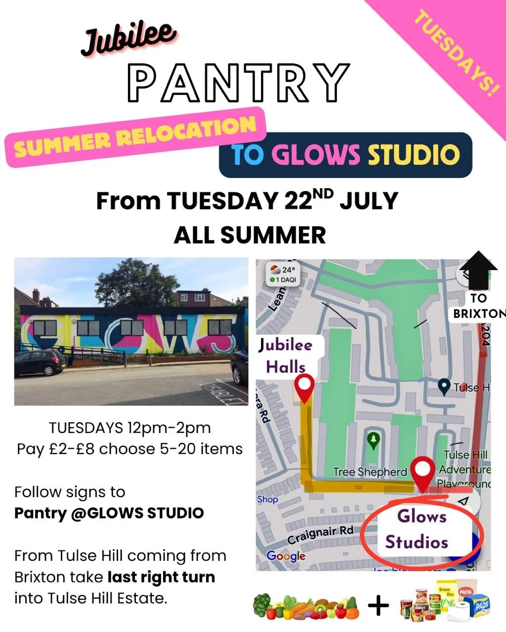 New location for food pantry for August 8 Aug Written By india thorogood Tulse Hill Estate’s affordable food pantry is moving for August, but only one min away! india thorogood